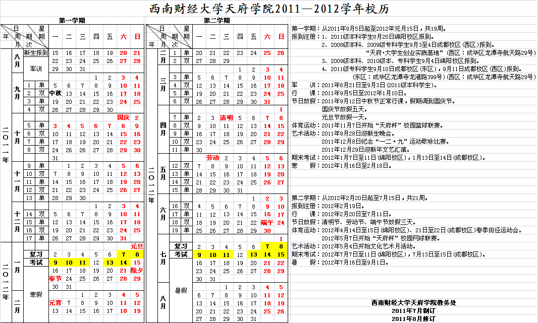 2011-2012学年校历