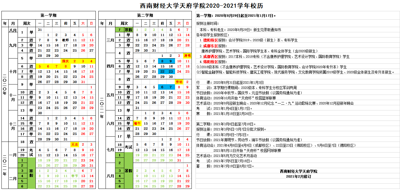 2020-2021学年校历