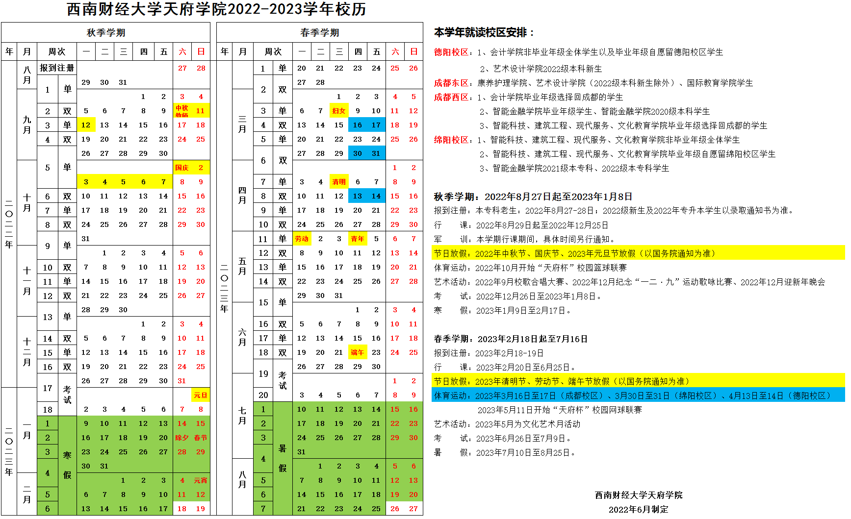 2022-2023学年校历