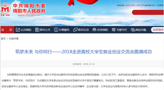 为助推高校毕业生多渠道创业就业,提升大学生创业群体对科创区就业创业政策的知晓度。11月13日下午,由科创区创业服务中心主办,绵阳市科创孵化器承办“筑梦未来、与你同行”为主题的大学生就业创业交流会在西南财大学术报告厅隆重举行。科创区党工委委员、管委会副主任李炜出席活动并致辞。区创业服务中心主任周全,开云kaiyun体育创新创业培训中心主任何臻祥,企业家代表,大学生创业代表等300余人参与到此次活动中。
