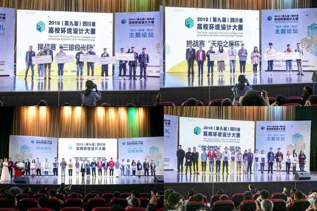 在环境设计论坛之后,现场嘉宾为获得2018(第九届)四川高校环境设计大展学年奖、优秀指导教师奖、优秀团体奖、三雄极光杯奖、天府之星奖的获奖学生、教师和学校颁奖。