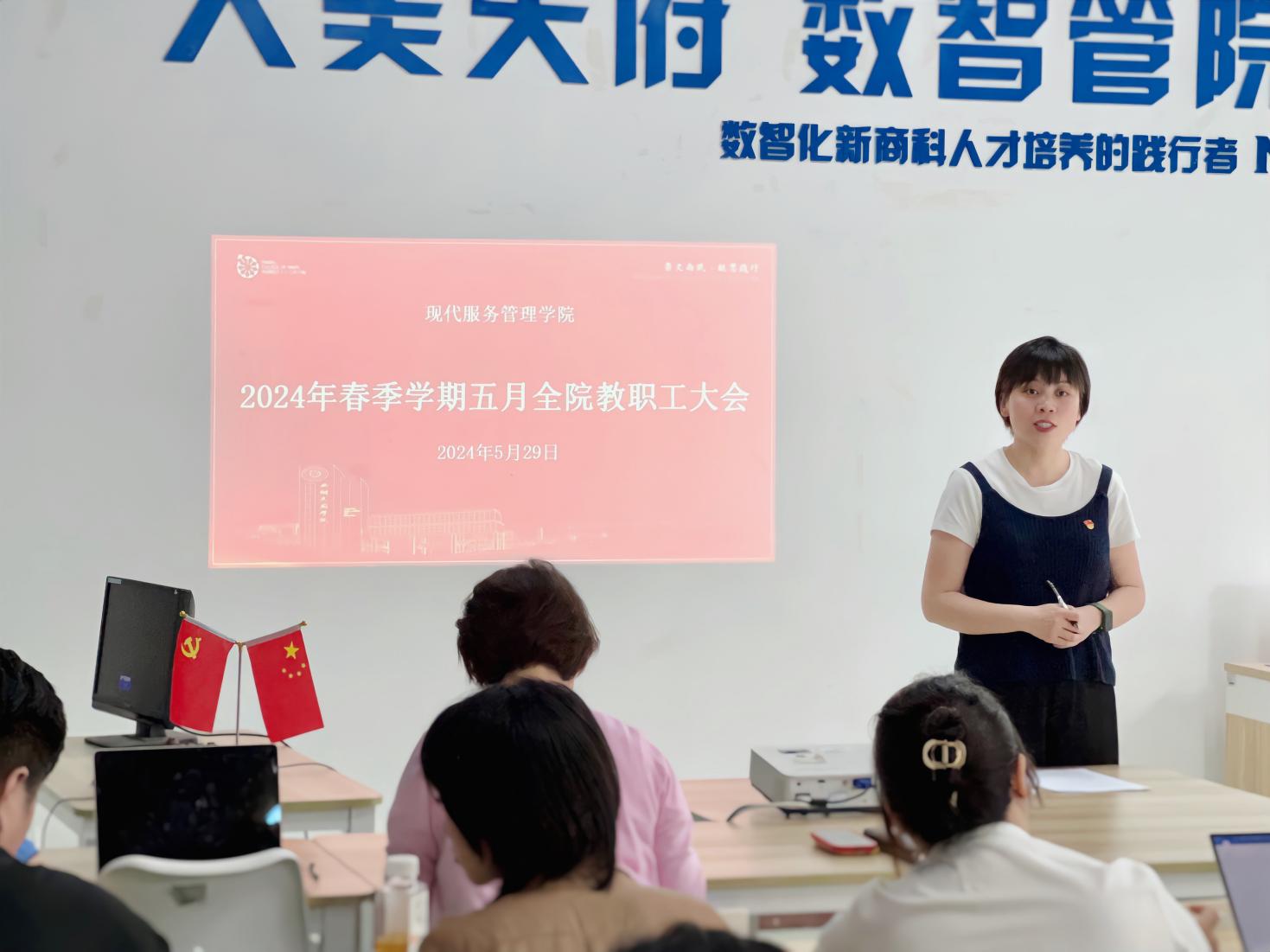 【现代服务管理学院】学院召开五月教职工大会暨党纪学习教育大会