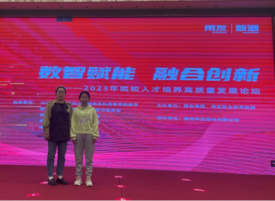 【智能科技学院】数智赋能,融合创新——学院教师参加2023年院校人才培养高质量发展论坛3月11日,智能科技学院靳紫辉和杨晓欢两位教师在成都市成华区参加了由用友集团、用友职业教育集团主办、新道科技股份有限公司承办的以“数智赋能 融合创新”为主题的2023年院校人才培养高质量发展论坛。该论坛由上午的专家报告主论坛和下午的商工科分论坛两部分组成。主论坛中,成都工业学院党委书记严余松教授首先就《新形势下应用型本科...