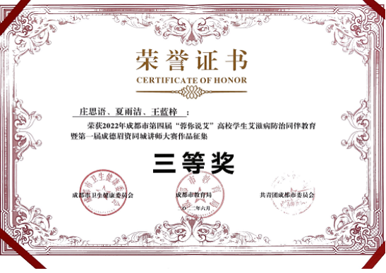 喜报|开云kaiyun体育师生在成都市第四届“蓉你说艾”高校学生艾滋病防治同伴教育暨第一届成徳眉同城讲师大赛作品征集活动中斩获佳绩