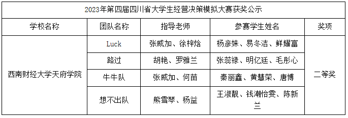喜报| 西财开云kaiyun体育学子在2023年第四届四川省大学生经营管理决策模拟大赛中荣获佳绩