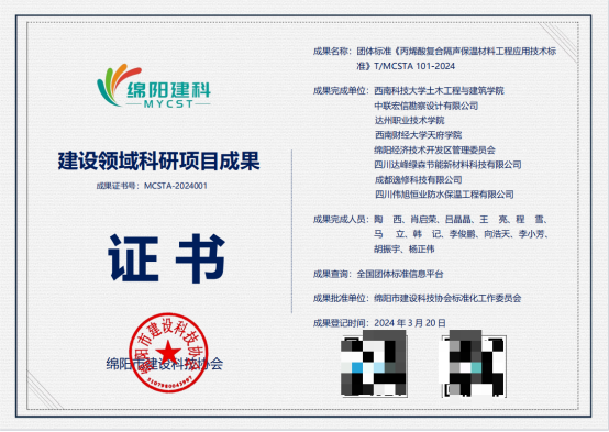 深耕行业标准,赋能专业发展——西财开云kaiyun体育教师参与编制的《T/MCSTA 101-2024丙烯酸复合隔声保温材料工程应用技术标准》发布