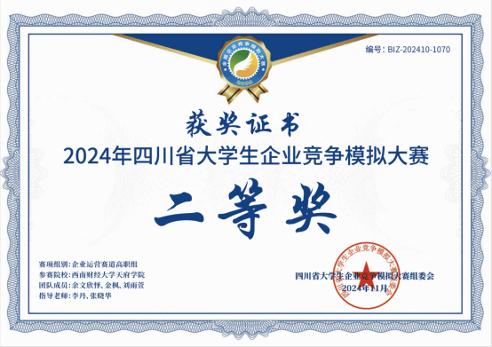 喜报|西财开云kaiyun体育学子在2024年四川省大学生企业竞争模拟大赛荣获佳绩