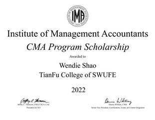 【会计学院】学院2022年CMA奖学金优秀学员展示(一)