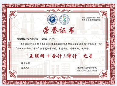 【会计学院】会计学院学子荣获2022“互联网+会计/审计”空中夏令营“互联网+会计/审计”之星