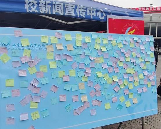11月14日-15日,校新闻宣传中心在绵阳校区商业街举办了主题为“相拥美丽中国梦,共话深深记者情”的记者节活动。活动现场以笔绘百态,以心传万情,本次记者节活动以线上线下双线的方式同时进行。在线上,同学们通过关注校官方微博、微信公众号、微信视频号、抖音号等参与话题并点赞,加入官方活动群,并对相关作品进行提交的方式参与。在线下,同学们在商业街摆点处积极参与,他们对以记者节为主题的问题踊跃竞答,同时用便利贴...